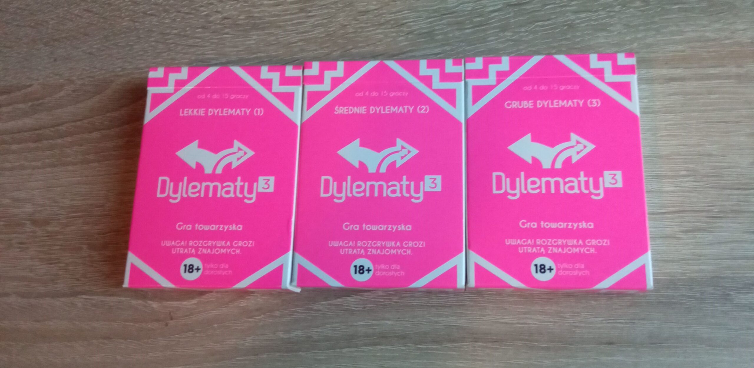 Dylematy 3 to imprezowa zabawa skierowana do osób dorosłych, pełna trudnych wyborów. Usiądźcie w kręgu w grupie od 4 do 15 osób i rozdajcie każdemu z graczy po 2 karty do głosowania. Wybierzcie talię, którą będziecie grali oraz tego, kto rozpocznie zabawę. A potem dajcie się porwać dyskusji o moralności i konsekwencjach swoich decyzji!